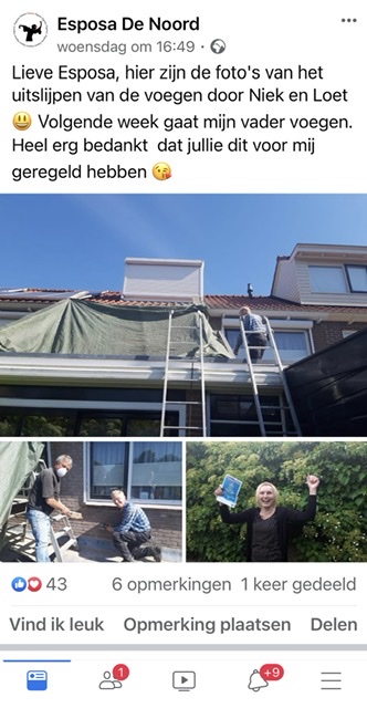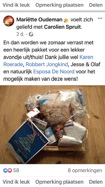 Bedankje op FB van een blije Esther