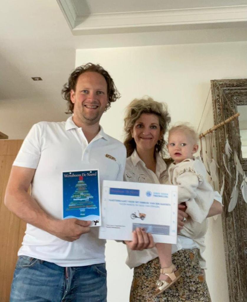 Een mooie wens van de buren voor Jan, Suus en Jackie. Een 10-rittenkaart voor het gebruiken van de bakfiets die ter beschikking is gesteld door Edwin Groen Tweewielers. Zij kunnen nu gezellig, met Jackie in de bakfiets, ritjes maken. Wat komt dat goed uit met dit schitterende weer. Veel plezier Jan, Suus en Jackie. 🤗 🚲 ☀️